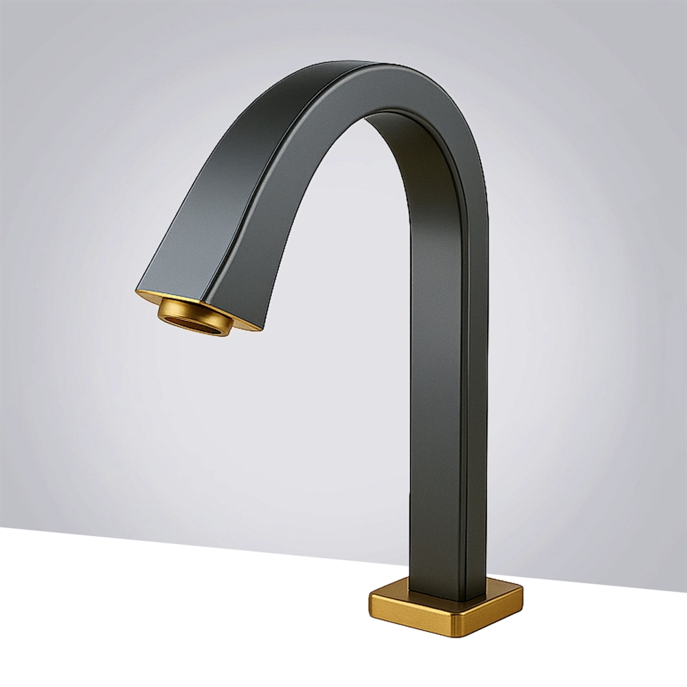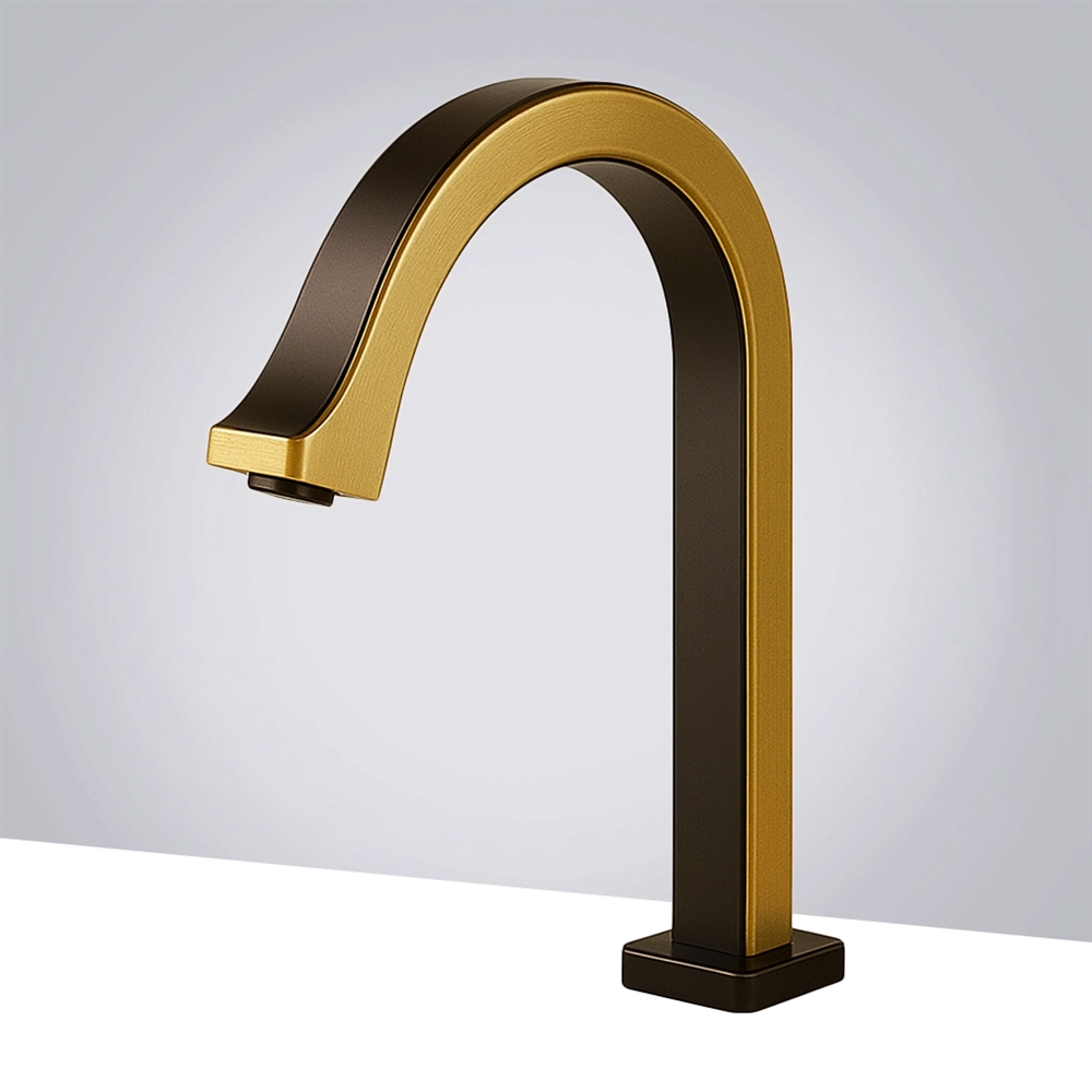 The DualTone Gold & Black Fusion model is the most design-forward faucet in this group. It combines warm gold tones with matte black contrast, creating a premium fixture suited for luxury hospitality, executive restrooms, boutique commercial interiors, and high-end residential bathrooms.